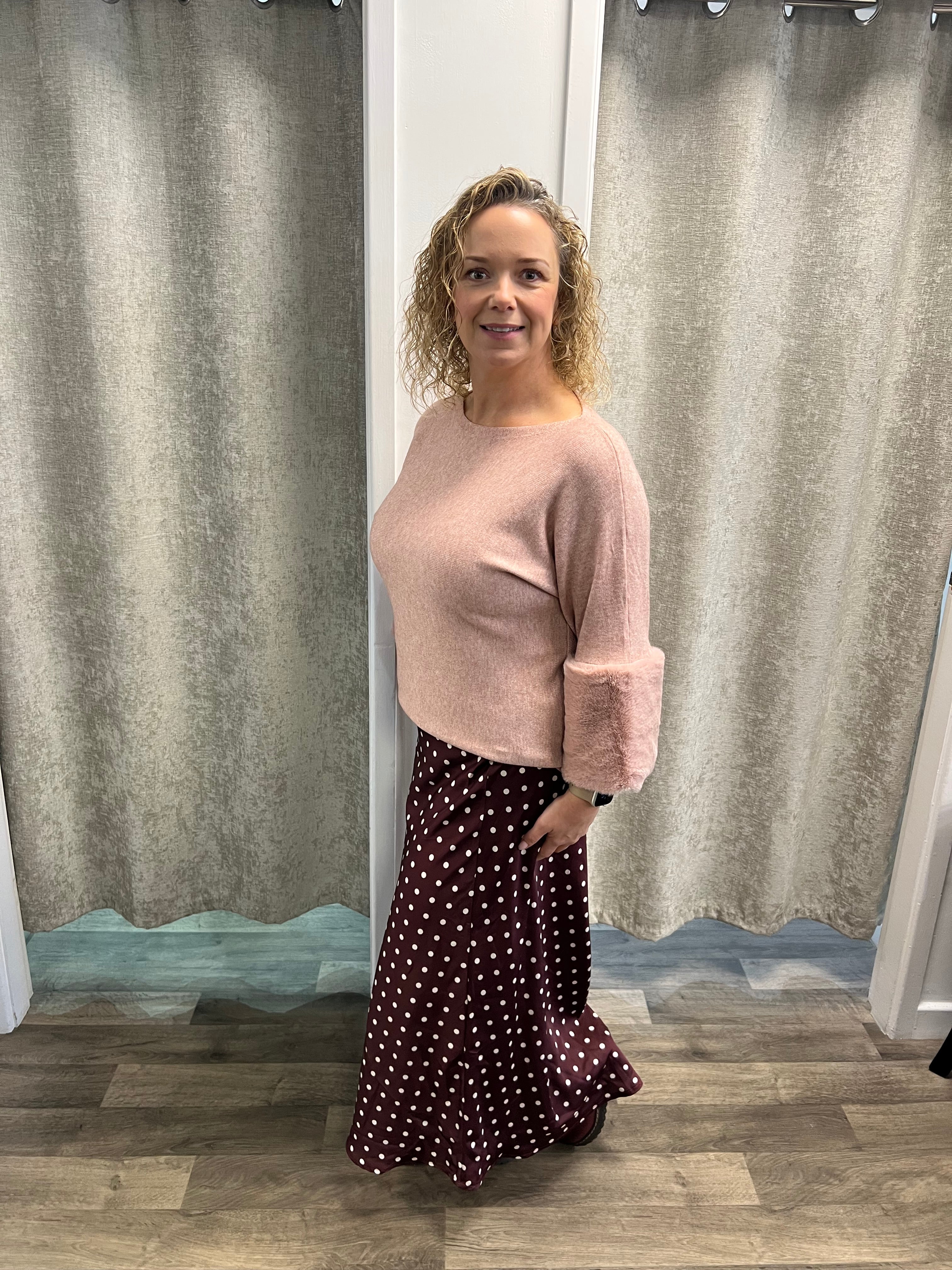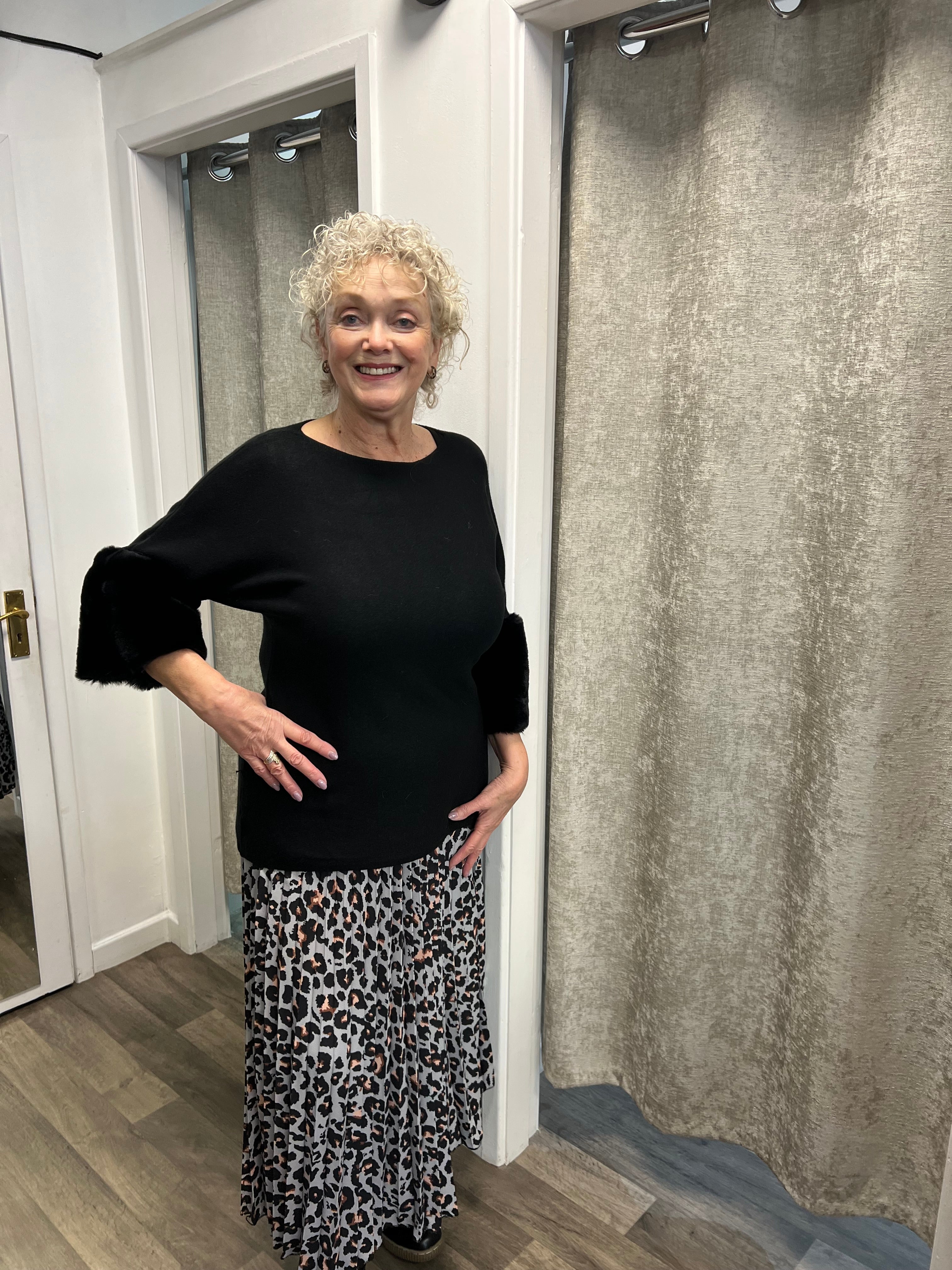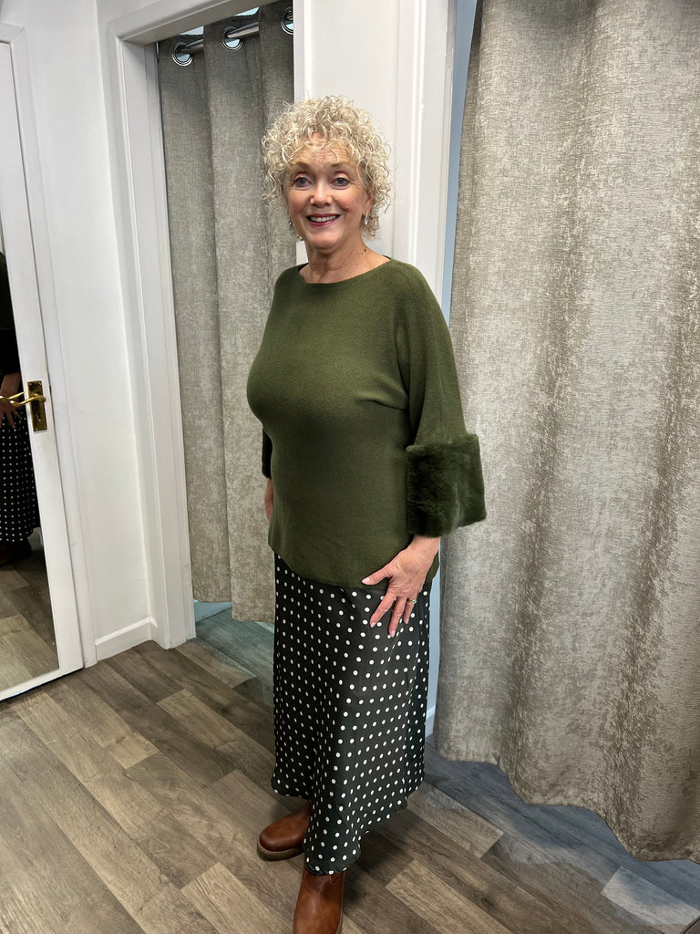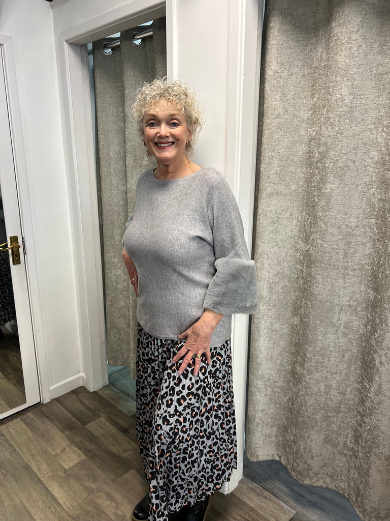 Stunning knit with 3/4 sleeved and cuff of faux fur.