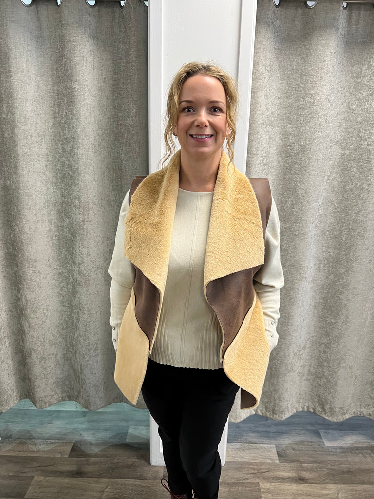 Stunning gilet faux fur & suede with panel detail of both fabrics.