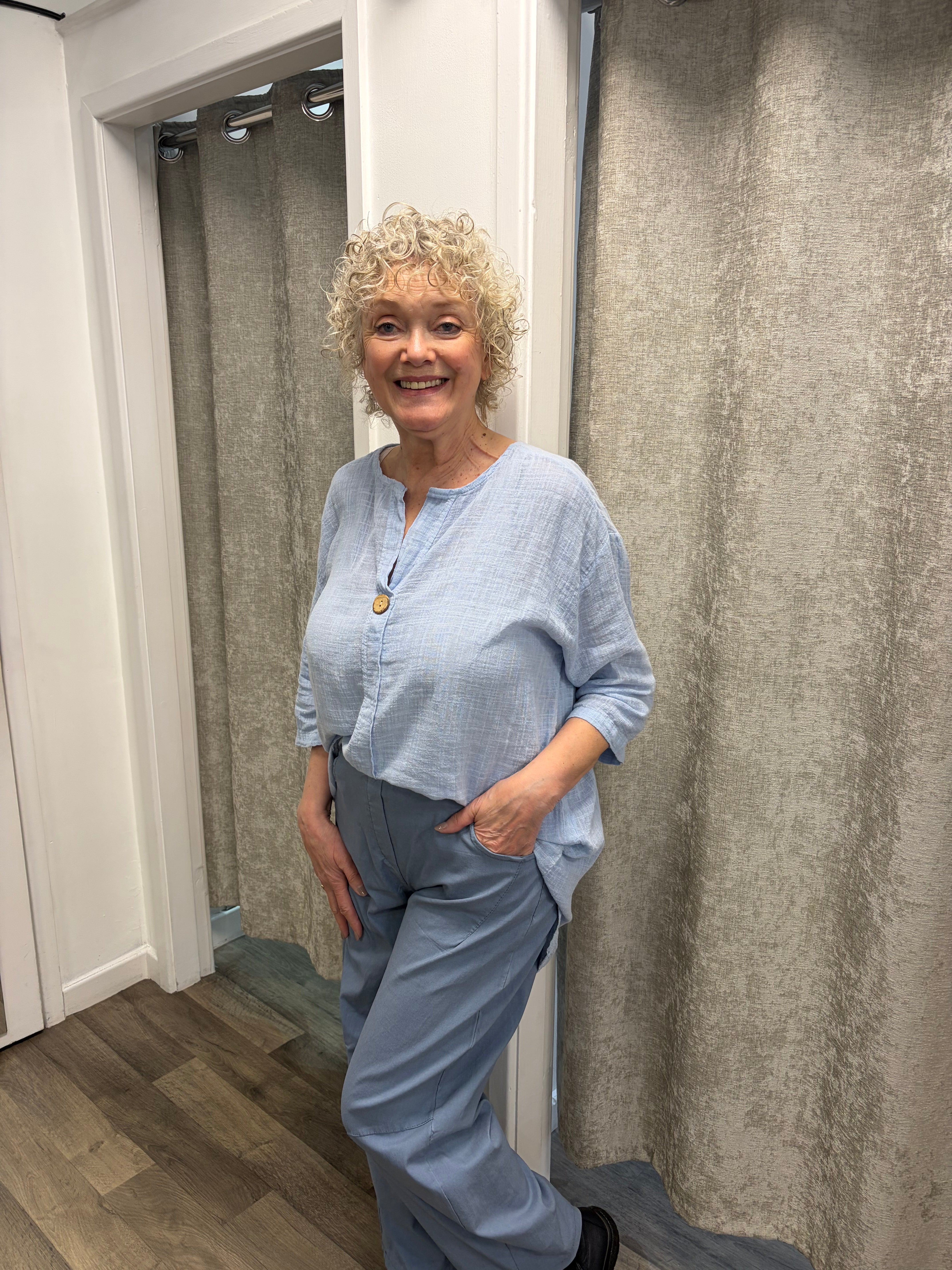 Our best selling stretchy magic pants now with a relaxed barrel leg.