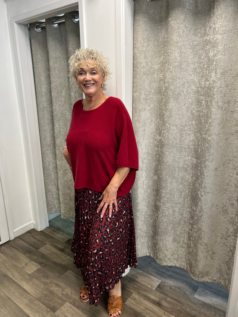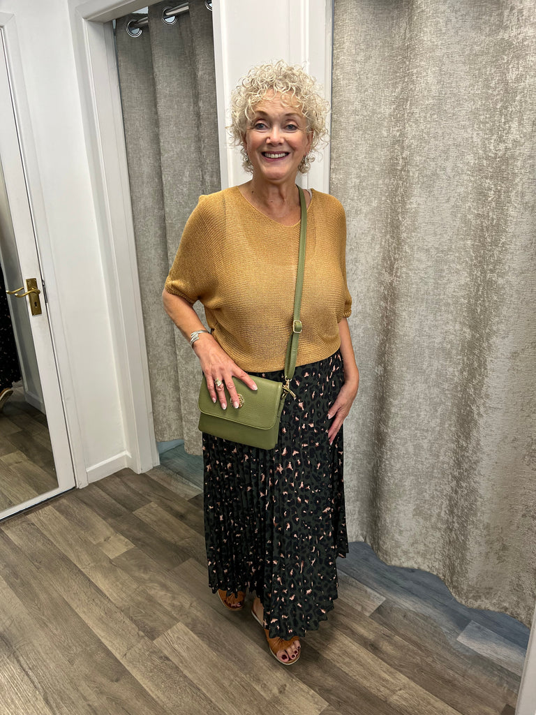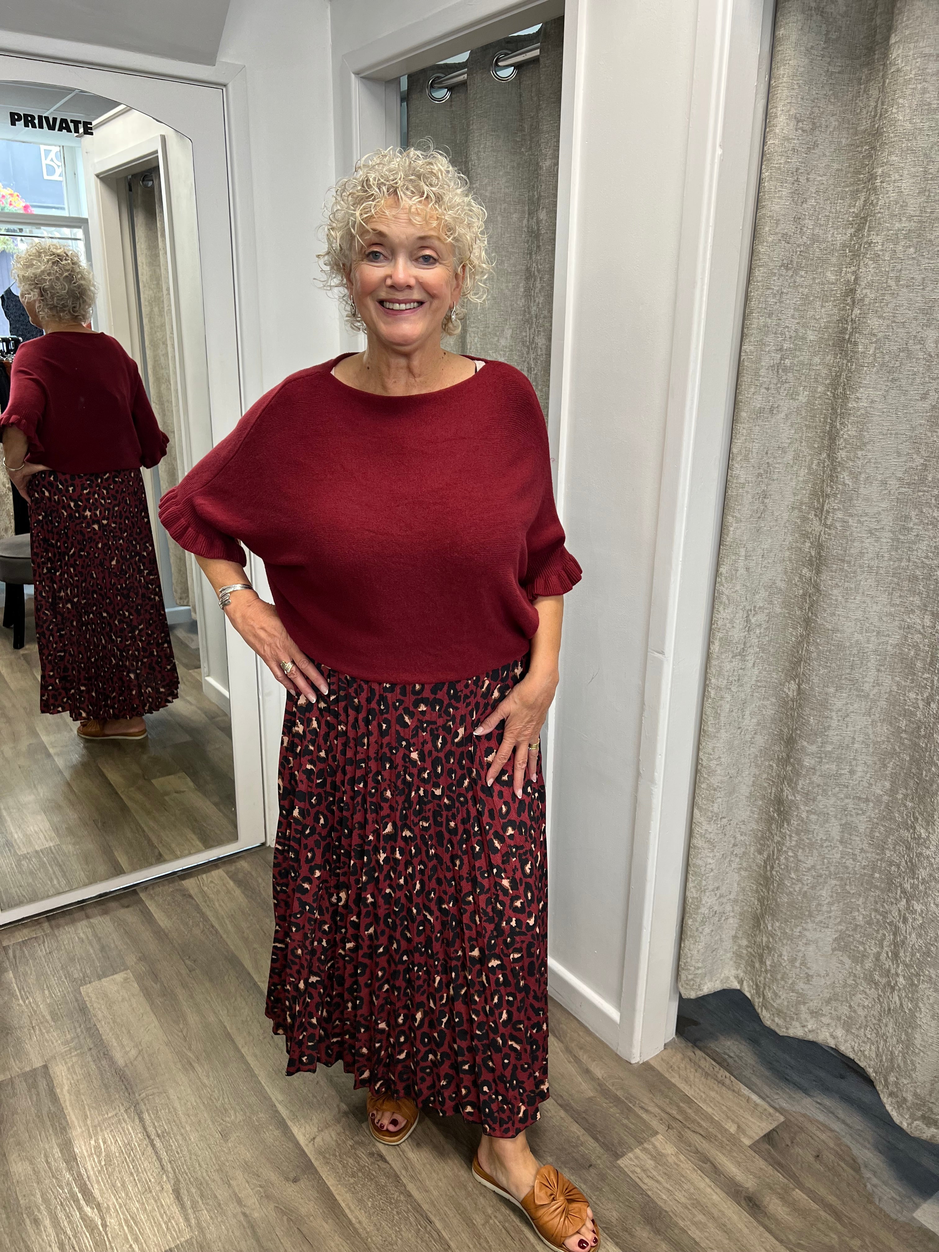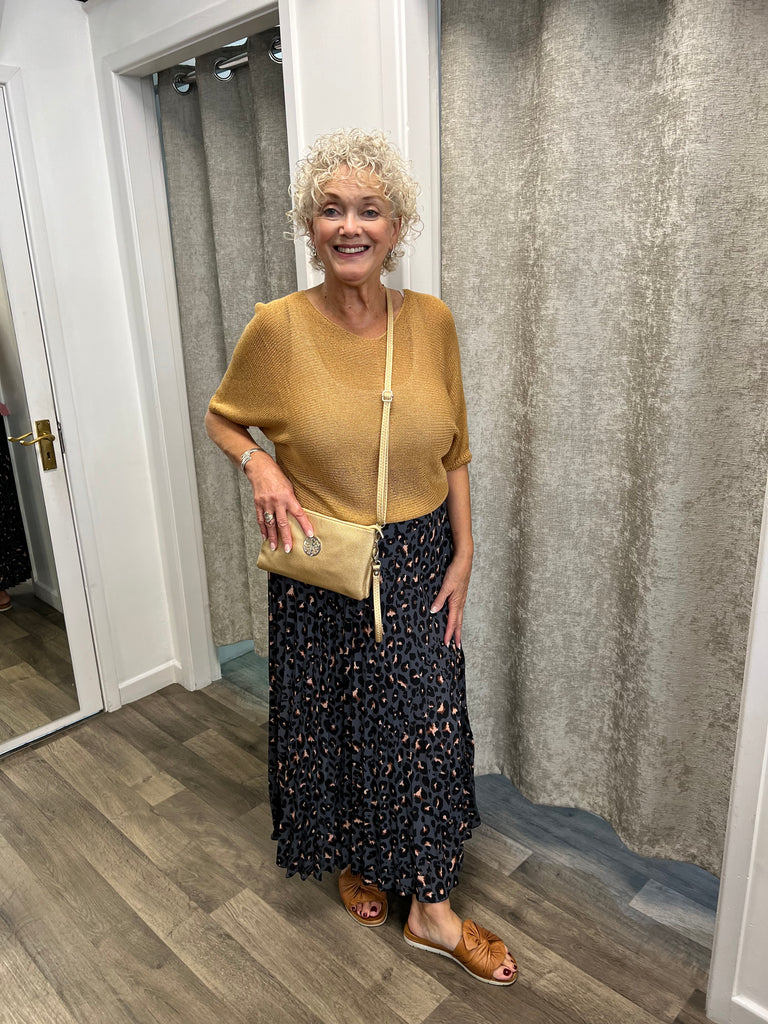 Lovely skirt with leopard print and pleats with soft waistband.