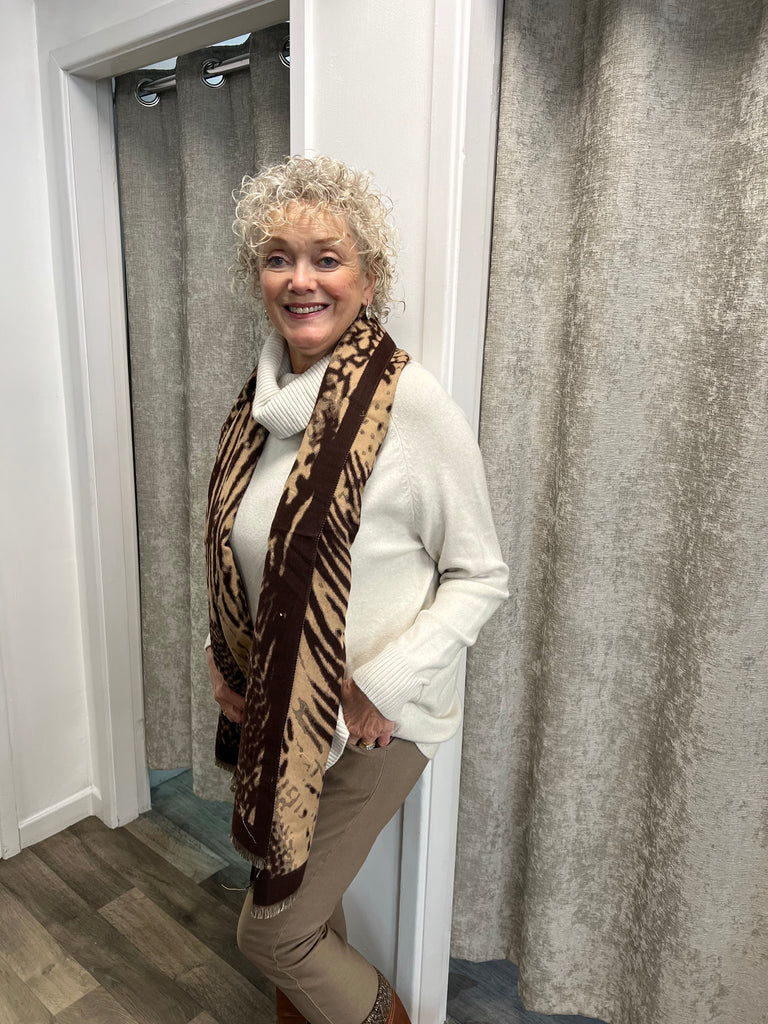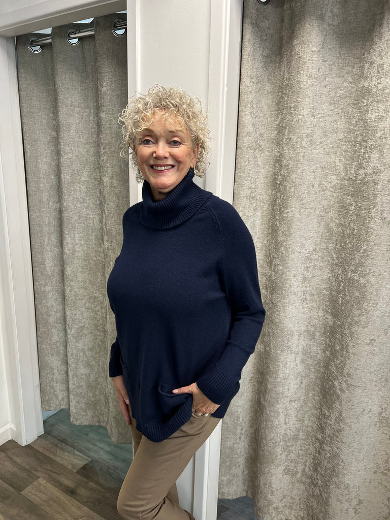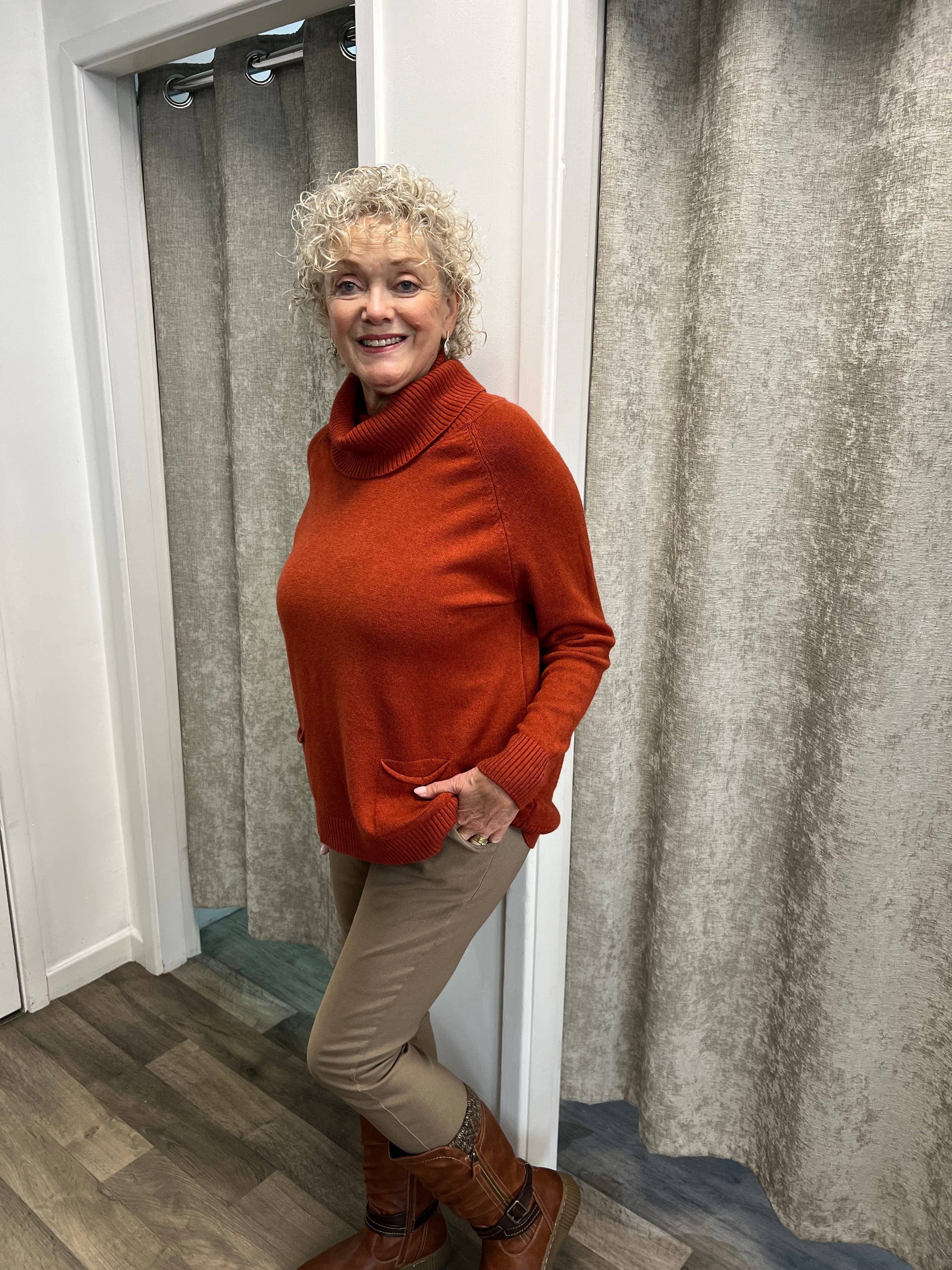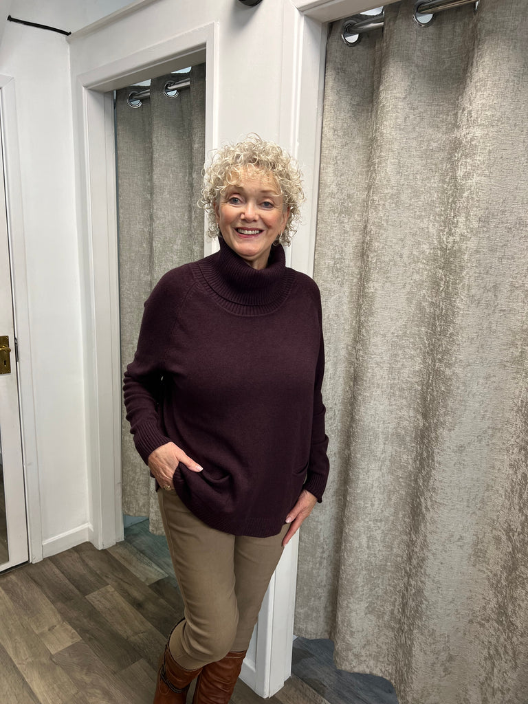 Get winter ready with our polo neck knit with 2 pocket detail.