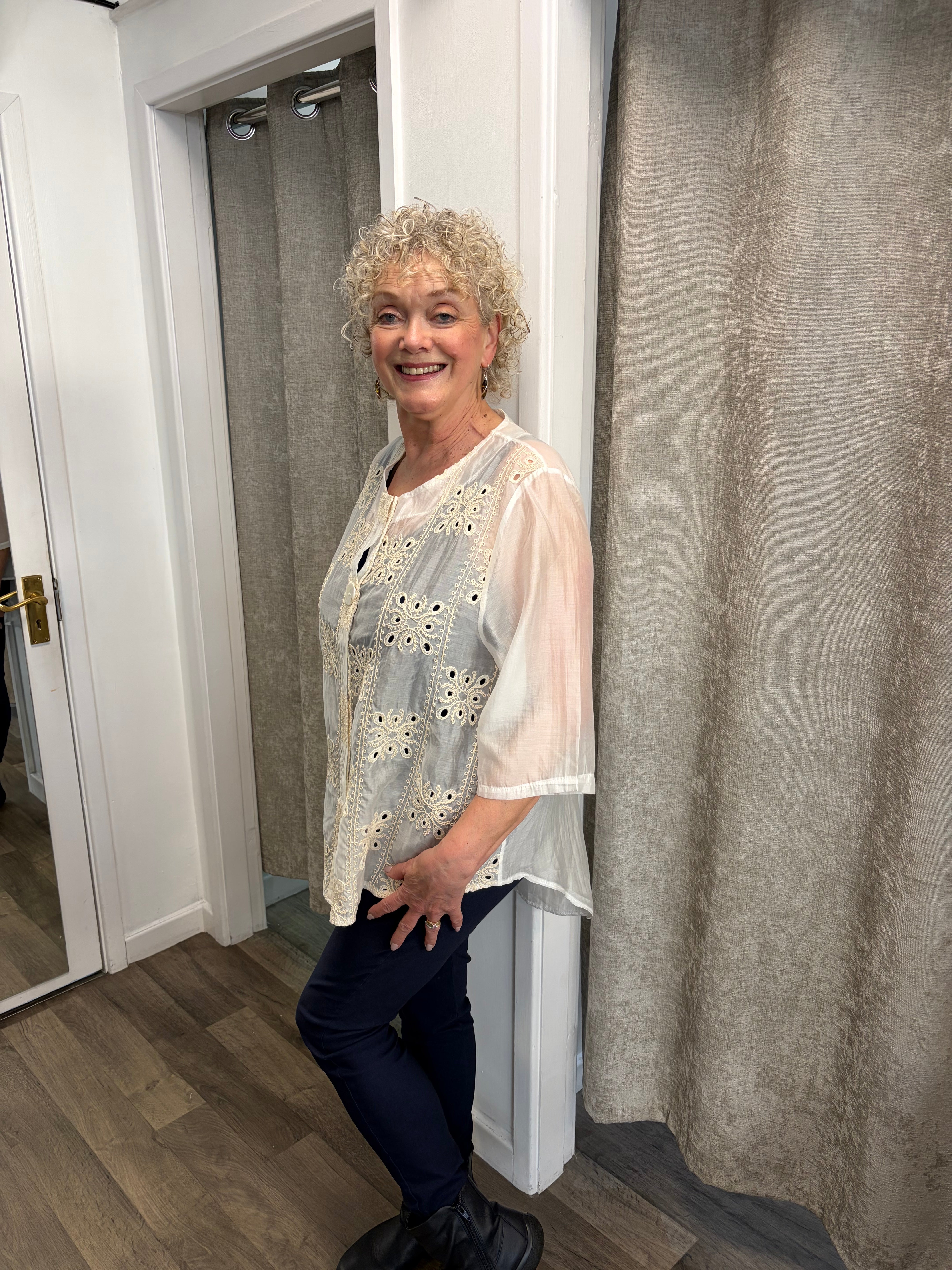 Stunning blouse with button detail and embroidered design.